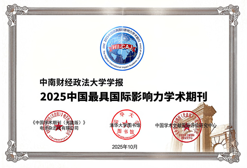 多年来,《中南财经政法大学学报》出版质量与国际影响力持续提升。此次入选“中国最具国际影响力学术期刊”,是对学报长期坚守学术品质、深耕国际化传播的肯定,也彰显了学报在学术研究与国际传播中的重要贡献。